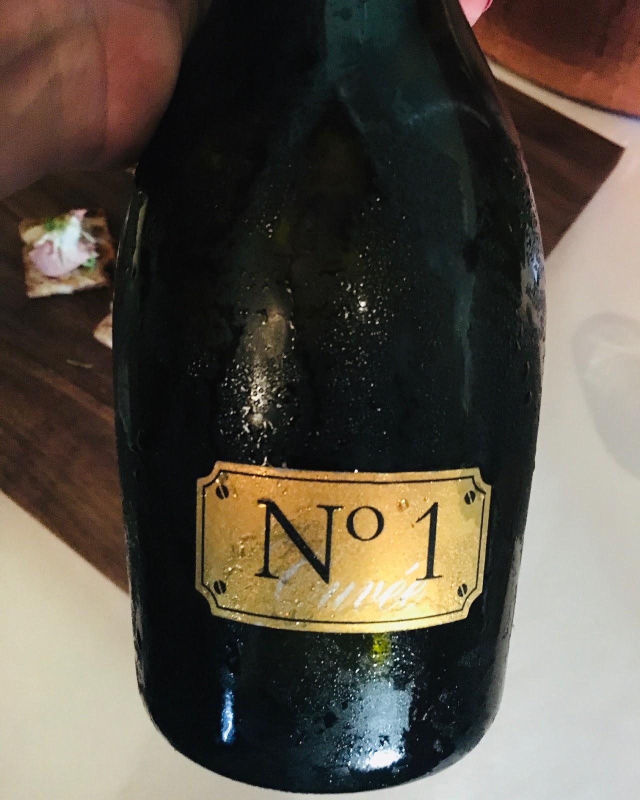 A dry bubbly. Yellow apple, pear, white peach, apricot, and floral notes.